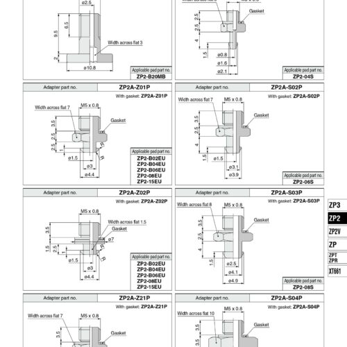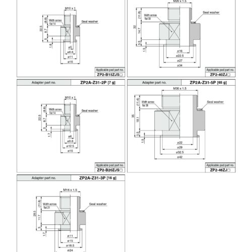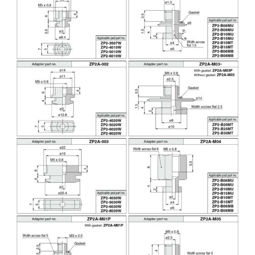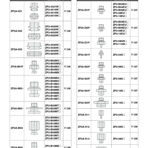 Đầu nối khí nén SMC ZP2A-001, ZP2A-002, ZP2A-003, ZP2A-M01P, ZP2A-M02, ZP2A-M03, ZP2A-M04, ZP2A-M05, ZP2A-M06, ZP2A-Z01P, ZP2A-Z02P, ZP2A-Z21P, Zp2A-S01P, Zp2A-S02P, Zp2A-S03P, Zp2A-S04P, Zp2A-S05P, Zp2A-S11, Zp2A-S12, Zp2A-S13, Zp2A-S14, Zp2A-S15 được sử dụng để nối khí nén với pad hút, núm hút chân không dể hút sản phẩm. mỗi dạng vacuum pad sẽ tương đương với các loại đầu nối khác nhau:
