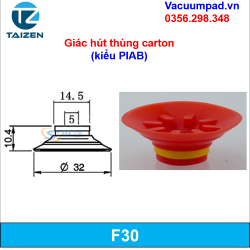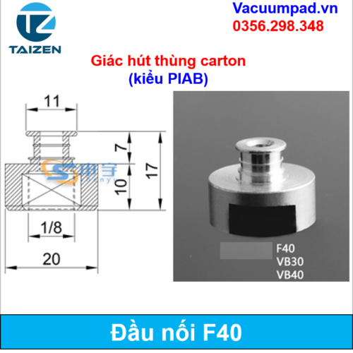 F15, F20, F25, F30, F40, F50 Giác hút, đầu hút chân không (kiểu Piab)