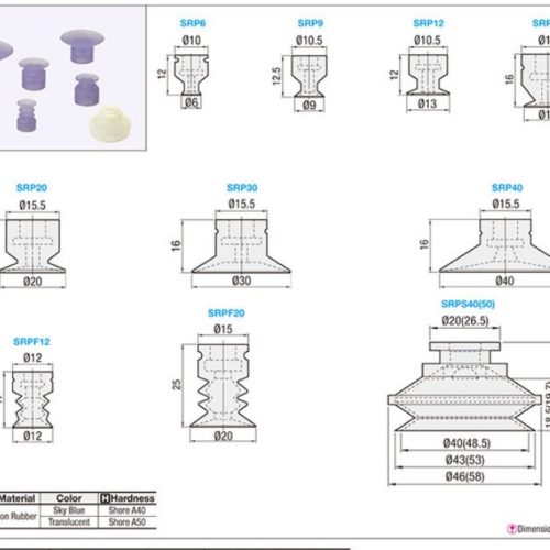 VPF, VPU, VPE, VPJ giác hút, núm hút chân không Misumi