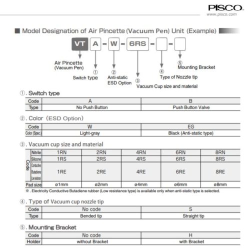 VTA/VTB-W/EG-1/2/4/6/RN RS RE PISCO bút hút chân không