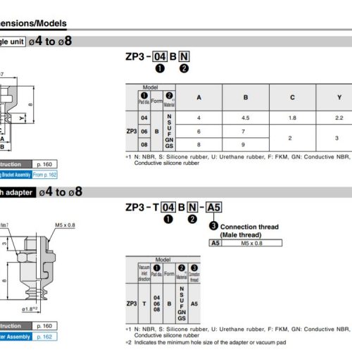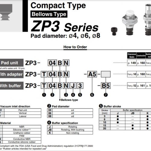 ZP3-T04BN-A5, B5 | Giác hút chân không ZP3 Series | SMC là 1 dụng cụ dùng để hút chân không được sử dụng để hút các loại hàng, sản phẩm trong các cơ cấu máy tự động hóa.