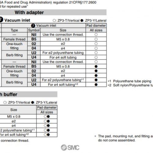 SMC ZP3-U giác hút chân không catalogue
