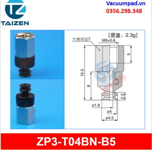 ZP3-T04BN-A5, ZP3-T04BN-B5 được làm từ vật liệu cao su cao su silicone và đầu nối ren M5, trong và ngoài: