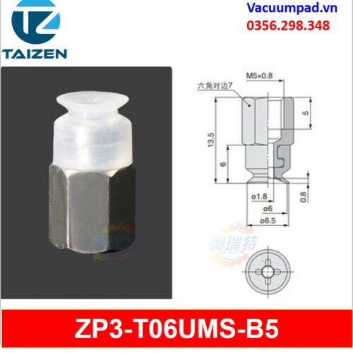 ZP3-T06UMS-A5, ZP3-T06UMS-B5 được làm từ vật liệu cao su cao su silicone và đầu nối ren M5, trong và ngoài: ZP3A-T2-A5, ZP3A-T2-B5, ZP3A-T3-A5, ZP3A-T3-B5, ZP3A-T1-A3