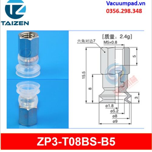 ZP3-T08BS-A5, ZP3-T08BS-B5 được làm từ vật liệu cao su cao su silicone và đầu nối ren M5, trong và ngoài: