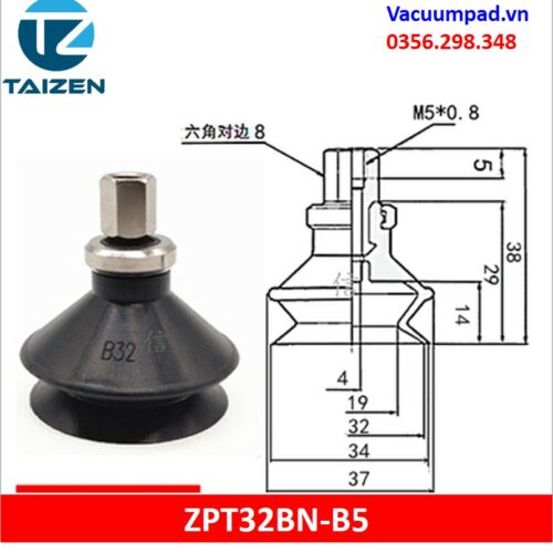 ZPT32BN-A5, ZPT32BN-B5 được làm từ vật liệu cao su cao su silicone và đầu nối ren M5, trong và ngoài: